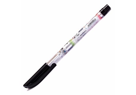 Bút có thiết kế đơn giản, toàn bộ thân bút làm từ nhựa trong pha màu nhạt, nhìn được phần ruột bút bên trong